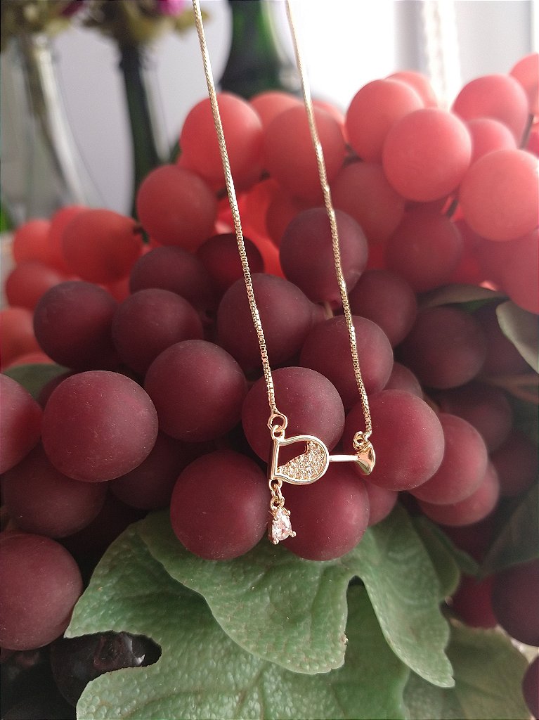 Eleve sua produção com a Gargantilha GOTA, uma joia que transforma a sofisticação em poesia. Apresenta uma delicada taça de vinho cravejada de pequenas zircônias, disposta na horizontal. Dela, uma zircônia em formato gota (3x5mm) de brilho intenso escorre com leveza, simulando o derramar de um vinho precioso. Um ponto de luz apaixonante que você vai querer ter no seu pescoço.